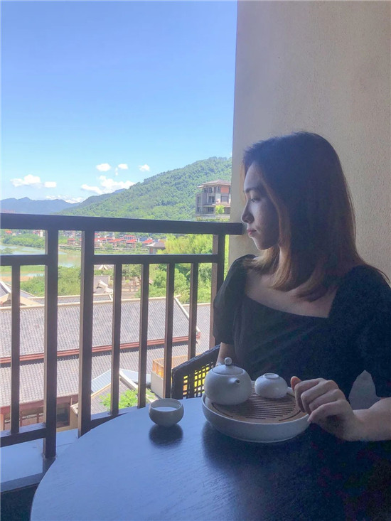 闲暇时倚在栏杆,看户外青山绿水环绕其间,风光旖旎。