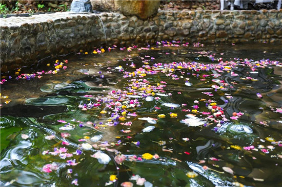 勿忘我、金盏菊、月季花等10种天然干花混合散入七子雾池,被花香包围的同时,感受千年温泉的深情滋润。