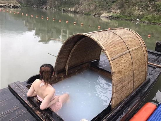 溪山温泉独创船上泡汤,还原潘溪风帆的景观,有牛奶浴和玫瑰浴2种泡法可选,伴着湖光山色畅享私汤,已经有很多小姐姐来此打卡过了哦~