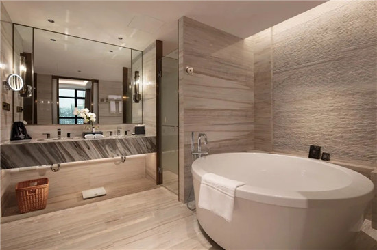 套房里的卫浴条件自然是更上一层楼,就连浴缸也是“高配版”!举着一杯红酒,泡在舒服的鱼缸里,想想都觉得美好!