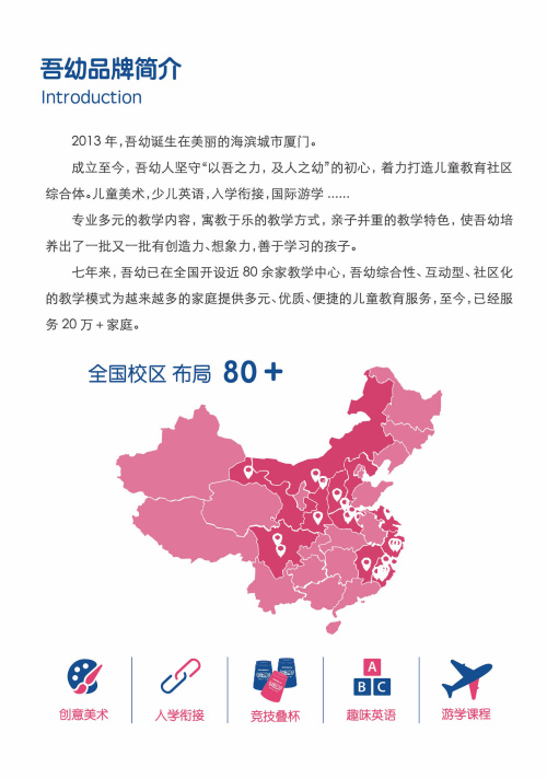 吾幼儿童教育社区是全国连锁的教育品牌,专注于2.5-12岁孩子的教育综合体,开设有少儿美术,北美外教双师英语,机器人编程思维,入学衔接等课程。秉持“以吾之力,及人之幼 ”的初心,砥砺前行。