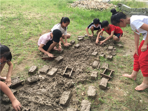 土砖,一般是一尺长、6寸宽、4寸高。印土砖的工序多:先用木板制成砖模,挖粘土填于模具内,用木棰夯实,拆下模具,将砖坯晒干即成,此砖可保持数十年不坏,且挡风雨;也是很苦很累的活儿。俗话说:“重不过挑砖泥。”这种活儿,从“80后”的人,根本是没见过,现在更是难得一见做土砖的。“11后”的小朋友可能听都没听说过,但是今天学习到了土砖的制作方法,也感悟到古人的智慧,用最简单的材料,抵御了数十年的狂风暴雨。