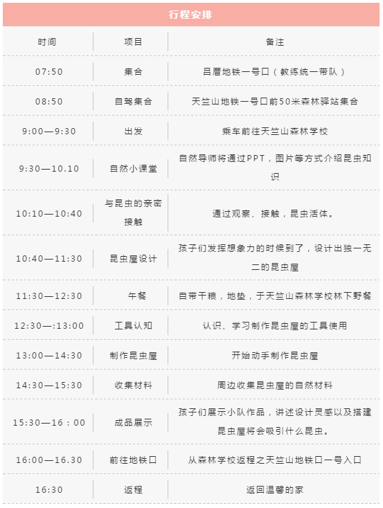 1.季节温度变化较大,请适当着装,可携带笔记本、彩色笔等文具,若有空余时间可以安排孩子做自然笔记。