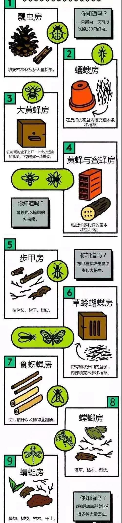 通过以上的例子,根据不同的昆虫觅食与栖息的环境,我们要选择不同的自然材料,比如废弃的木头、竹竿、砖、花盆、瓦片以及周边的树枝、树皮、秸秆等。不同的材料可以吸引不同的昆虫来居住。