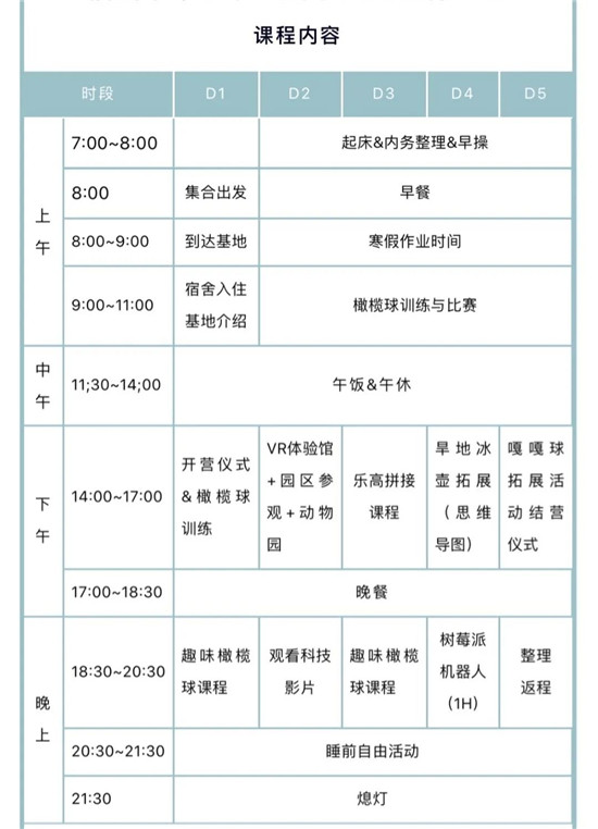 橄榄球特色冬令营具体行程安排