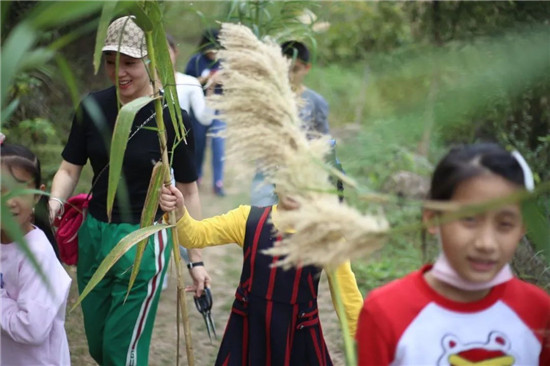 利用园区芦苇,花草,树枝为爸爸妈妈做一束花,爸爸妈妈辛苦了。