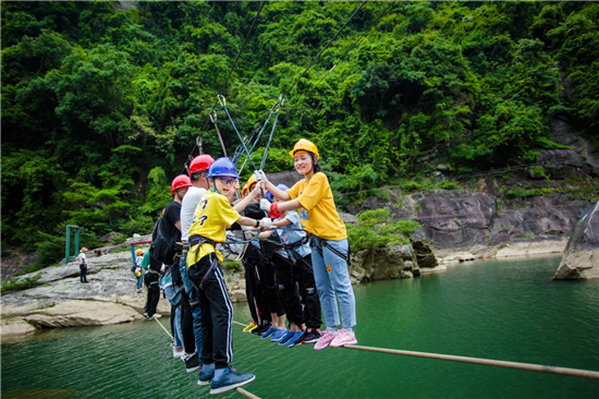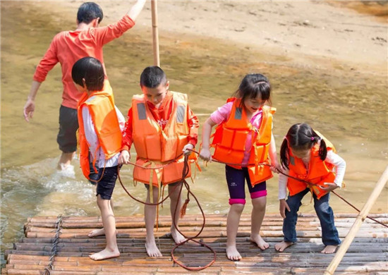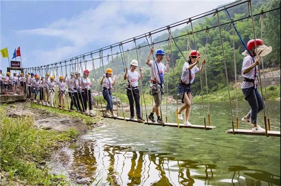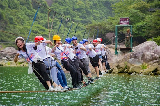 通过十几项参与性、趣味性为一体的峡谷穿越游玩项目。激发孩子们的勇气,制造一些小小的惊险与意外。