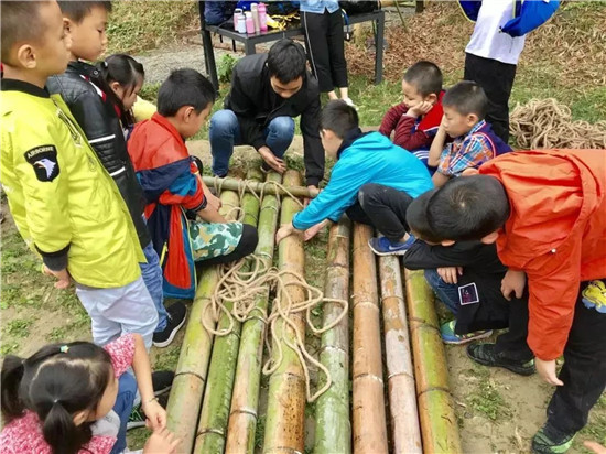 【竹筏】我们想象中的竹筏是不是一位老者撑着杆我们坐在上面泛湖嬉戏,哈哈哈,只能说想太多,想湖中嬉戏,那就需要自己动手扎筏,看谁的竹筏又稳又牢固。