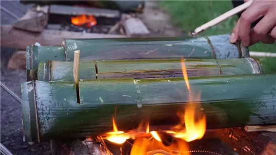【体验制作竹筒饭】让我们一起来制作具有浓厚乡村风味的竹筒饭吧~~锯成一小段一小段的,洗一洗制作美味的。采用优质香米、早米,加入盐和特别调味料等灌入青竹,然后用茶叶封口,放在温火上慢慢翻烤,20分钟以后,竹筒便发出滋滋之声,这是一股股浓浓的鲜香味儿便从淡淡轻烟中沁入心脾。