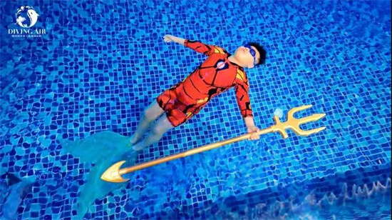 海豚踢:一般的自由潜水以静态闭气、动态平潜和恒重下潜为主,而美人鱼的潜水游动更靠近单蹼的技术动作,在进行美人鱼潜水课程时,我们将会学习海豚踢等技术动作,让我们在水下的动作更加自然柔美。