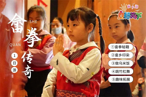 让孩子们用脚步丈量土地,用双手触摸自然,全身心投入到大自然中,学习畲族的语言/拳法/竹竿舞,做畲族乌米饭,感受畲族不一样的风情。在野外的时光,一定很精彩!