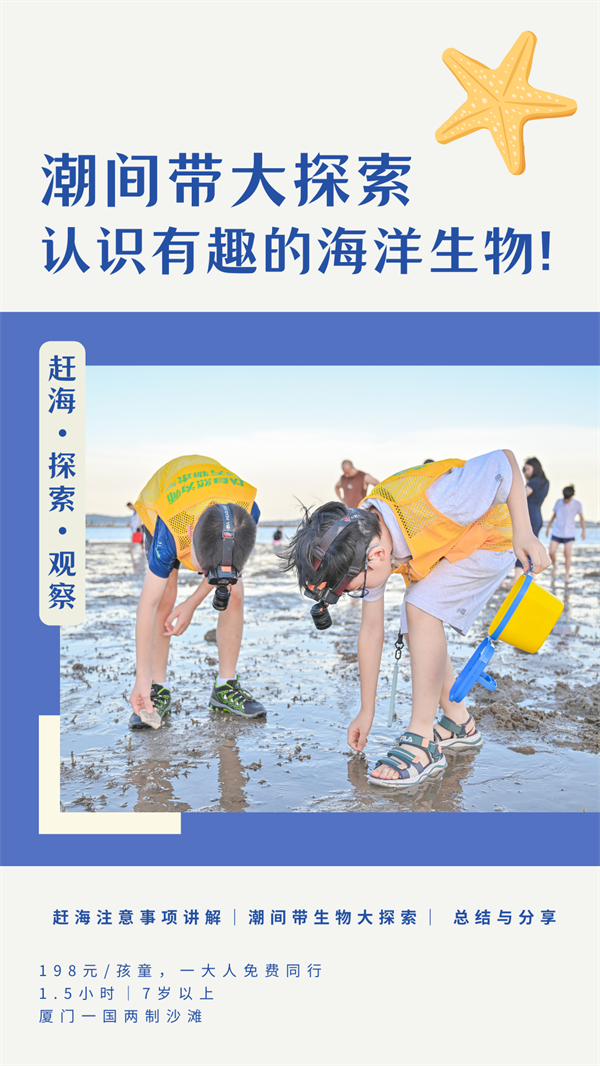 本次活动,自然导师将带领大家到海边,观察和认识有趣的海洋生物,学习赶海技巧。