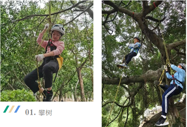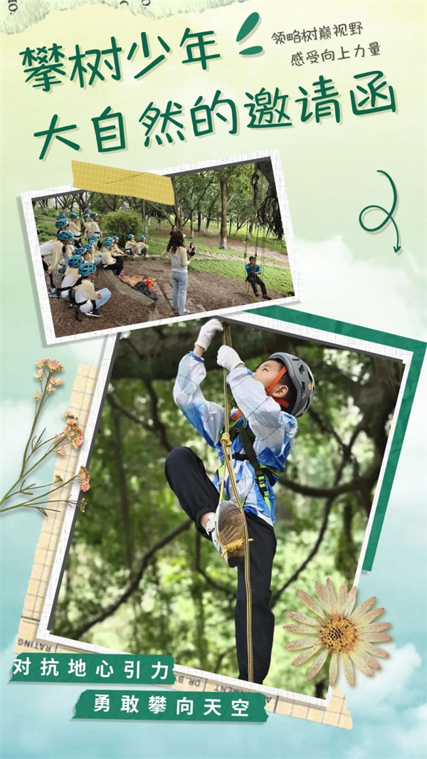 孩子们将穿上安全装备,在户外教练的指导下,学习如何在保护树木的同时,掌握攀树技巧,避免盲目攀树。