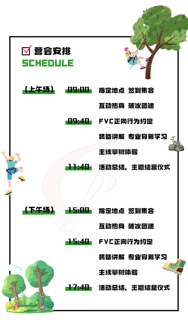注:排期表仅供参考。行程安排受天气、场地等因素影响,执教团队保留依情况略作微调的权利。