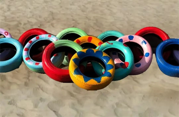 用五彩斑斓的彩绘轮胎