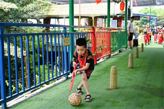 摘柿子趣味活动,考验的是同学们的眼力和动作准度。这个运动项目起源于畲族人山林摘果子的取食生活。