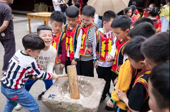 感受畲味,打糍粑的古老风俗,传递着千年不变的色、香、味和声音,一起体验打糍粑。