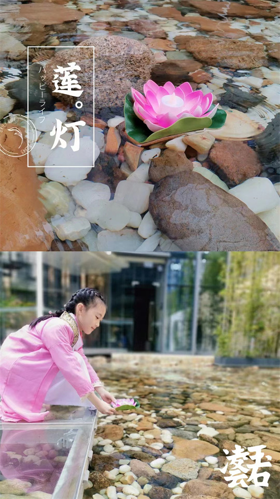 莲花是传统民俗用品,莲花灯寓意佛光普照,照亮每个人的心,其中也倾注着中国劳动人民的朴素情感,一起放一盏莲灯祈福。