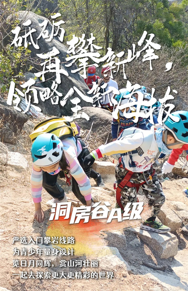 洞房谷线路专为零基础孩子设计,几乎无难度的入门攀岩,更通过攀谷培养孩子们的信心与抗挫、团队合作和沟通表达能力等。