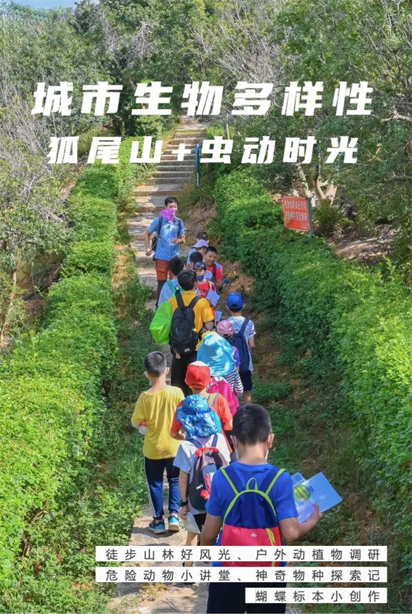 到狐尾山公园去寻找和记录各种不同的生物吧!了解野外动植物观察的方法,分析狐尾山的物种资源,学习野外昆虫采集技巧,只学方法,不破坏环境,不伤害昆虫,并完成物种生态调查表,进行总结与归档。