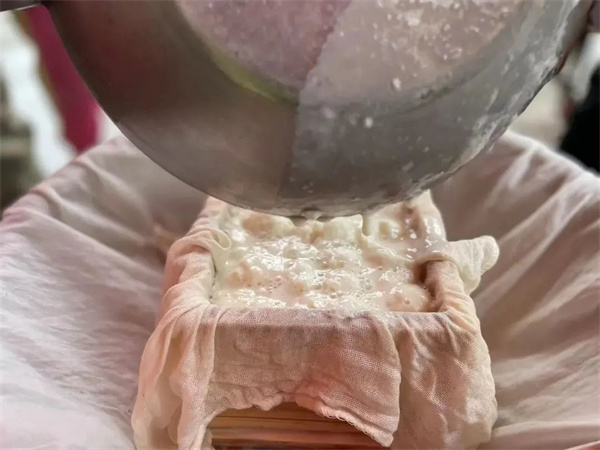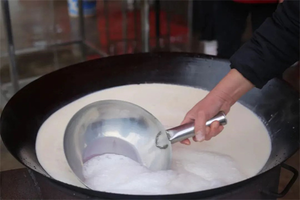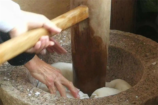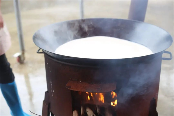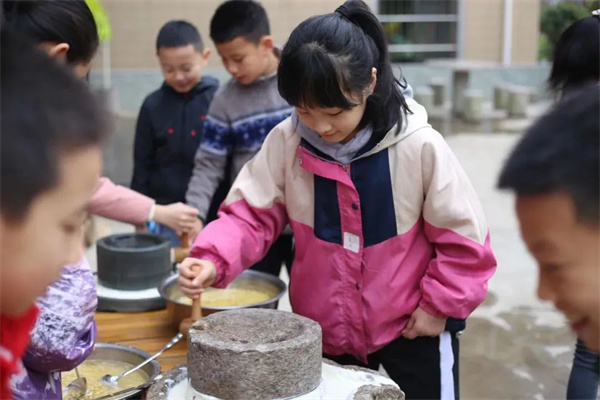 用传统石磨磨制豆浆,石磨含有天然矿物质,对身体健康大有益处。