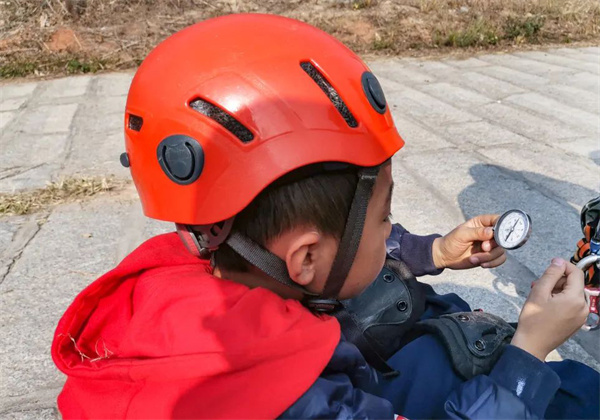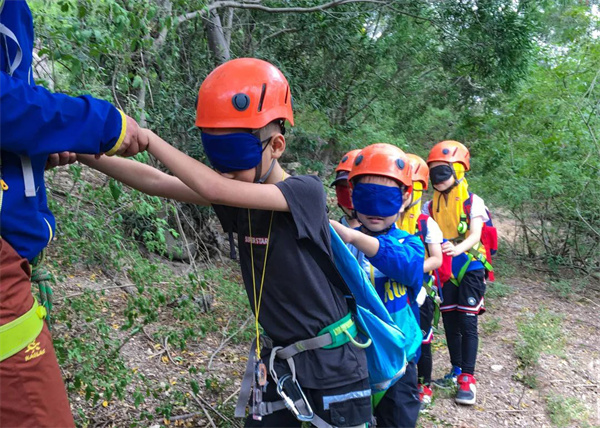 出发之前,我们的教练会讲解安全装备的使用和操作方法,让孩子们了解这些装备是如何保护自己的。