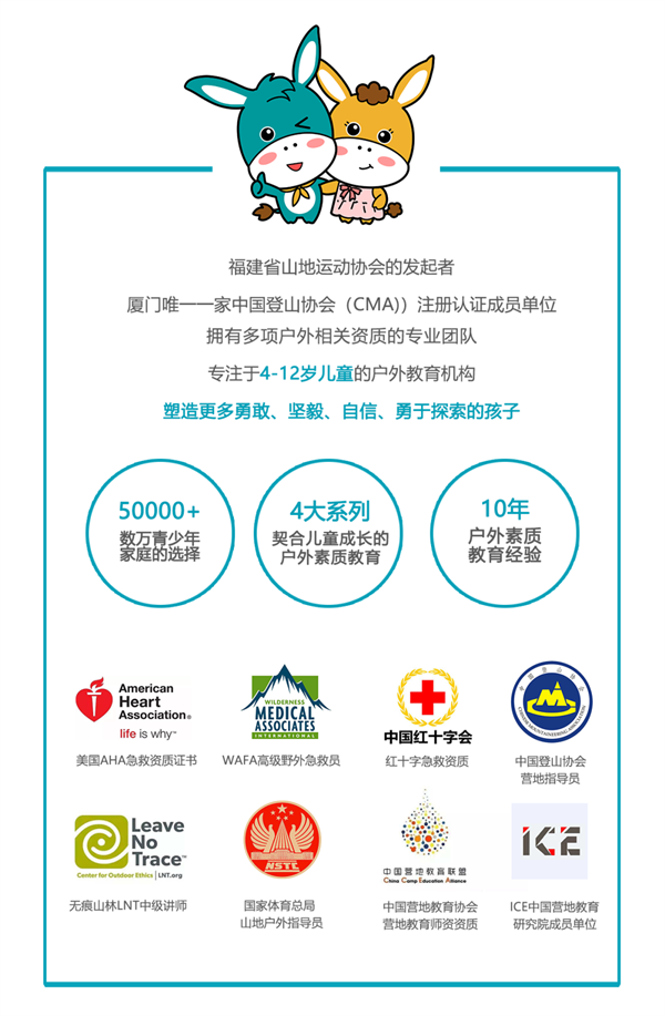 在山谷中,通过不同主题,不同难度的线路。从最基本的户外体验、兴趣培养,到中阶的技能学习,团队协作,再到进阶的户外技能提升。