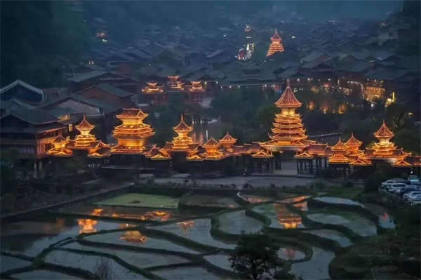 晚上:酸汤鱼、丹寨万达小镇篝火晚会或夜游小镇
