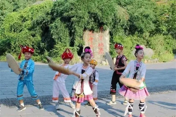 下午:游走侗寨、侗族小朋游戏互动、穿上少数民族服装学习侗族大歌、簸箕舞学习
