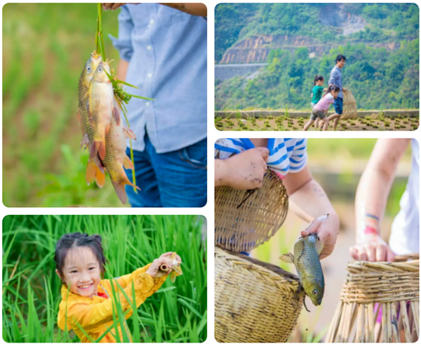 在梯田稻桩里抓鱼那就是不可多得的乐趣了