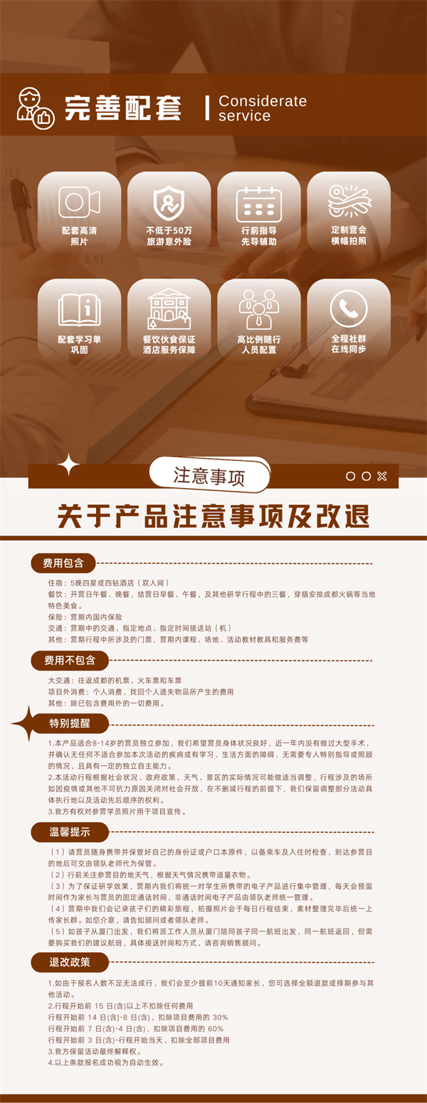 1、如由于报名人数不足无法成行,我们会至少提前10天通知家长,您可选择全额退款或择期参与其他活动。