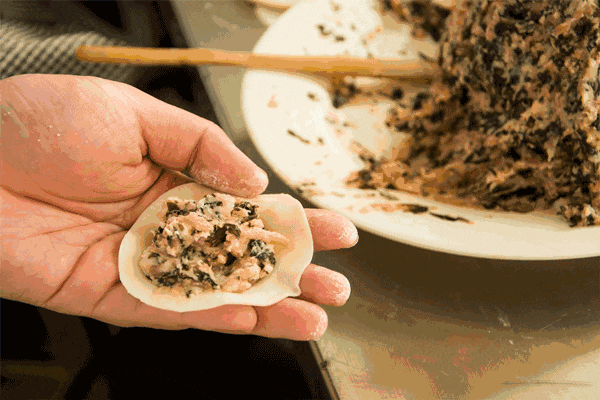 亲手和馅、包裹,捏制形状