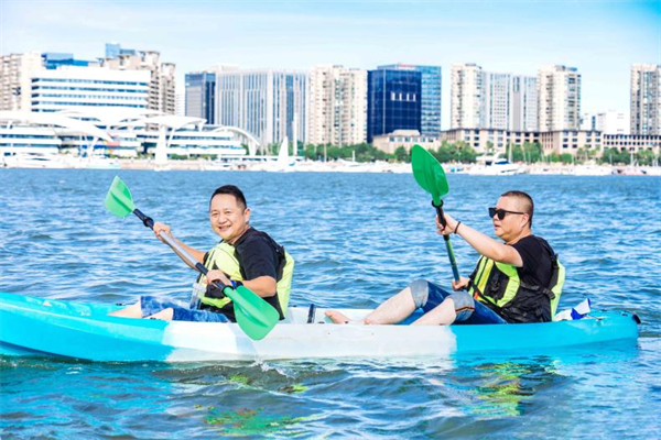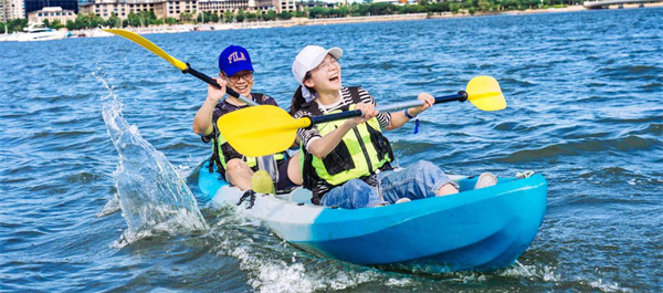 在皮划艇上,你可以随心所欲地掌控方向,享受着在水面上的独特感觉。每一次划动都像是与大自然的亲密接触,让你感受到前所未有的放松和愉悦。