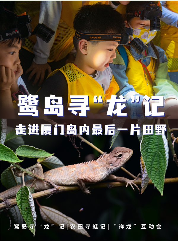 本次夜观,我们将走进厦门岛内最后的一片田野,在月色的笼罩下,带领孩子们寻找隐秘在鹭岛里的“龙”——变色树蜥,去探索这种“外来者”的生境和生活习性,并了解它们的故事。