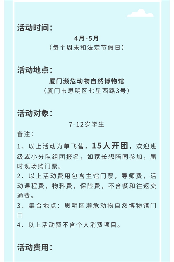 活动地址:厦门濒危动物自然博物馆(厦门市思明区七星西路3号)