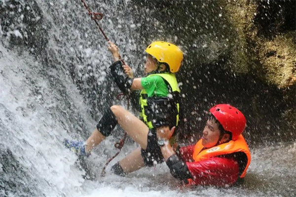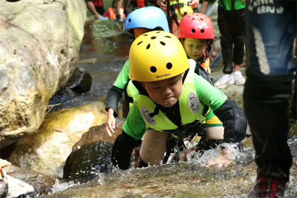 闯进河流的源头,沿着溪水逆流而上,置身于青山绿水间,翻过巨石,趟过水潭,探寻河流的源头瀑布,在彼此合作中克服地形和溪水,激发向上力量;