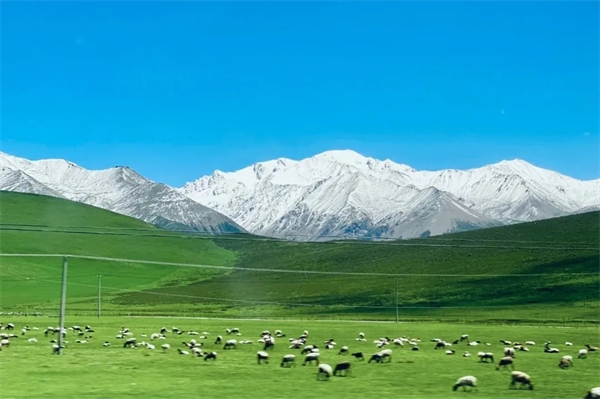 【祁连山草原】:草原上的牛羊成群,悠闲地漫步在肥沃的草地上,构成了一幅迷人的天然画卷。