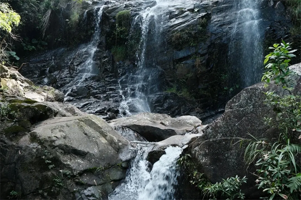 千仞的岩壁上面,泻银似的冲过崎岖的山石