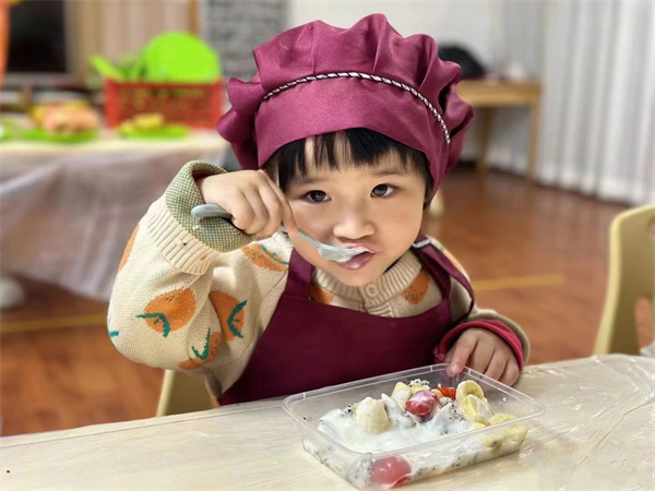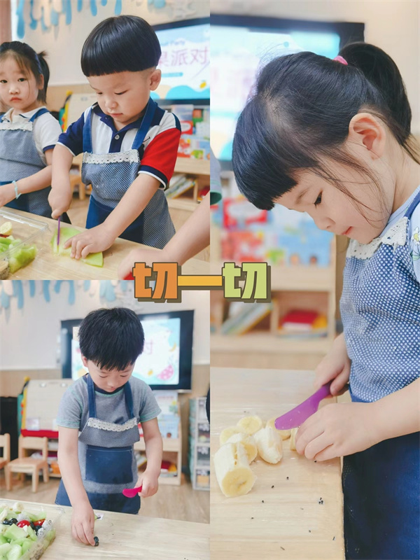 小朋友认真挑选水果的样子,真的太可爱了!看着他们把各种新鲜水果切成小块,再小心翼翼地拌匀,感觉满满的都是爱~
