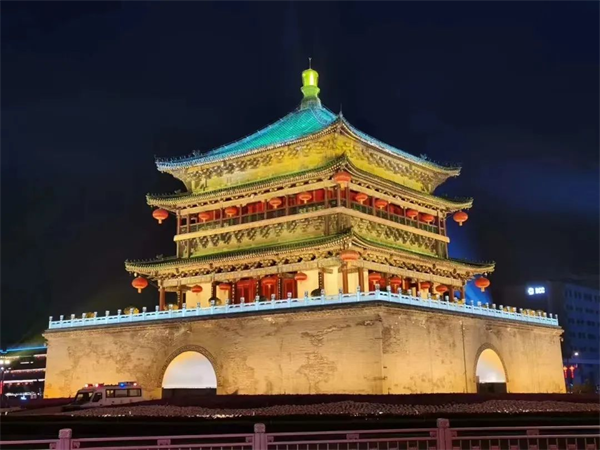 钟鼓楼广场是西安市一大景观,环境艺术设计沿着"晨钟暮鼓"这一主题向古今双向延伸,在空间处理上吸取中国传统空间组景经验,与现代城市外部空间的理论相结合,为古城西安提供了一个"城市客厅"。