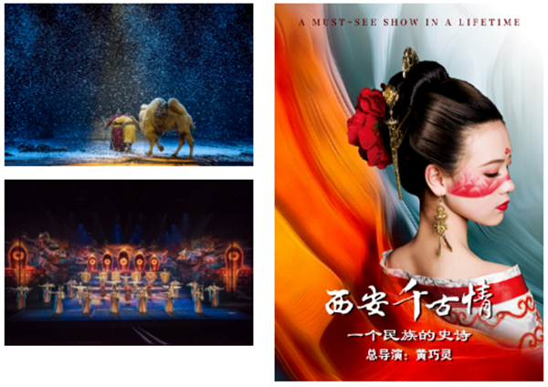 一座长安城,半部中华史。大型歌舞《西安千古情》用独特的艺术手法、天马行空的想象,上天入地的舞台科技,撷取了西安文化的精华,灞柳依依的浪漫诗情,万里扬沙的丝路传奇,大唐长安的盛世华章, 复兴之路的铮铮强音……