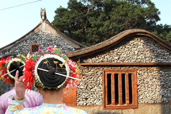 蟳埔村位于泉州东海的小渔村,这里居住的是古时阿拉伯人的后裔。女人们头上戴着鲜花做的漂亮的簪花围,戴着丁香耳坠,穿着大裾衫、宽脚裤,形成了一道独特的风情,她们和惠安女、湄州女一起并称福建三大渔女。