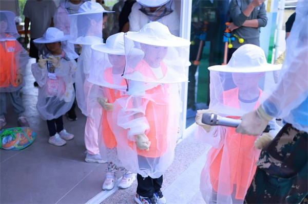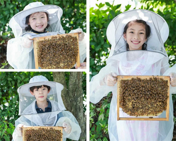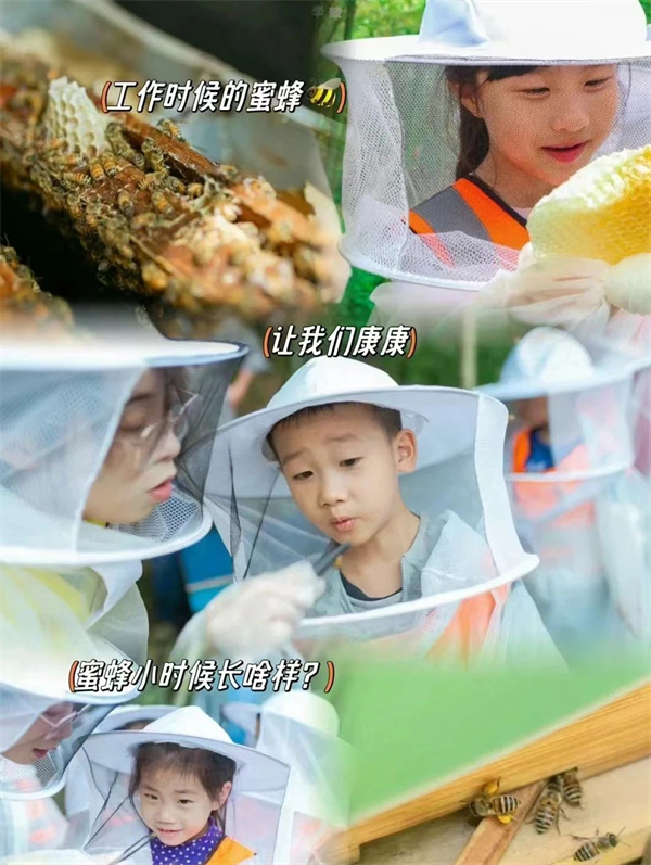 这次我们不怕啦,穿上蜂服,在专业养蜂人的指导下仔细观察蜜蜂的不同形态了解蜜蜂各成员的分工。