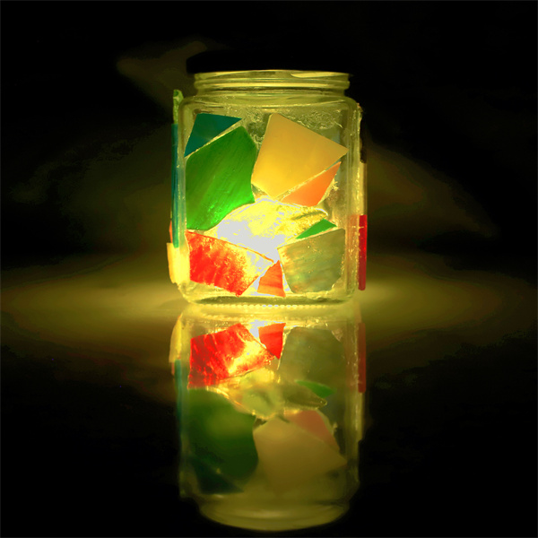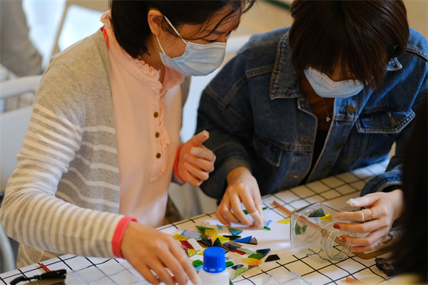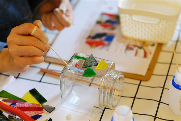 以玻璃器展品为灵感,动手拼贴,创作一件彩色玻璃镶嵌愿望盒。