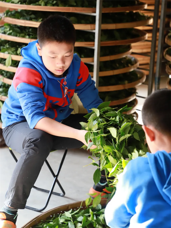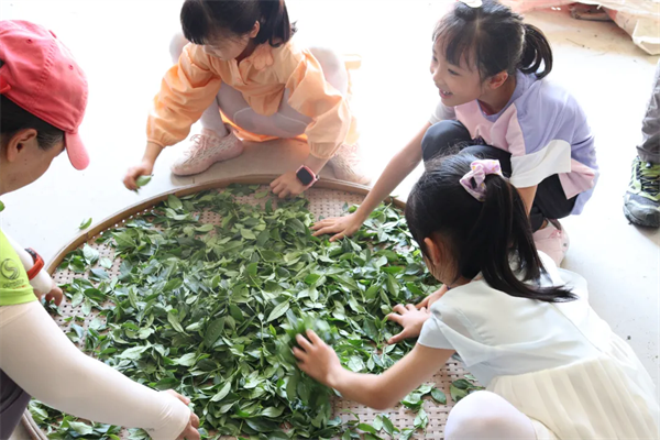 优质的茶叶,从采摘到成品要经过采青、晒青、炒青、揉捻等多个步骤。孩子们在导师的指导下,学习将茶青制作成可入口的茶叶。