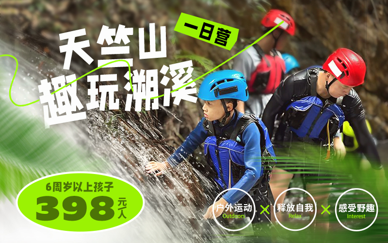 天竺峡谷是与天竺山森林公园共建开发的线路,森林茂密,山泉水清澈冰爽,沿途怪石林立,攀升高度较高,全程两处跳水台,并与景区在终点瀑布处建设攀爬区域,缓升高度10米左右,需要穿戴专业攀登装备进行挑战。
