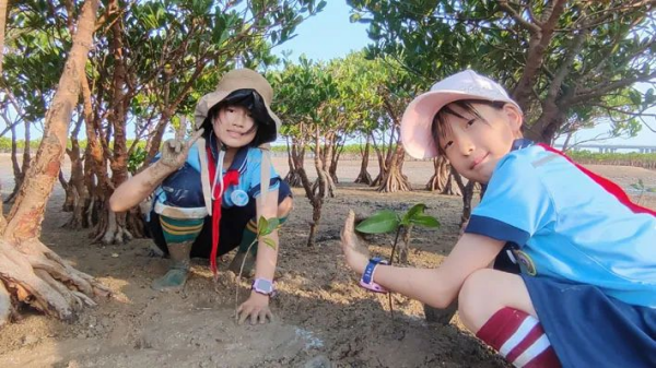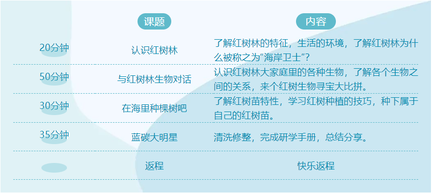 通过五感观察、感受红树林,在合适的位置,种下一颗颗红树苗,也种下一个海洋梦想的种子。