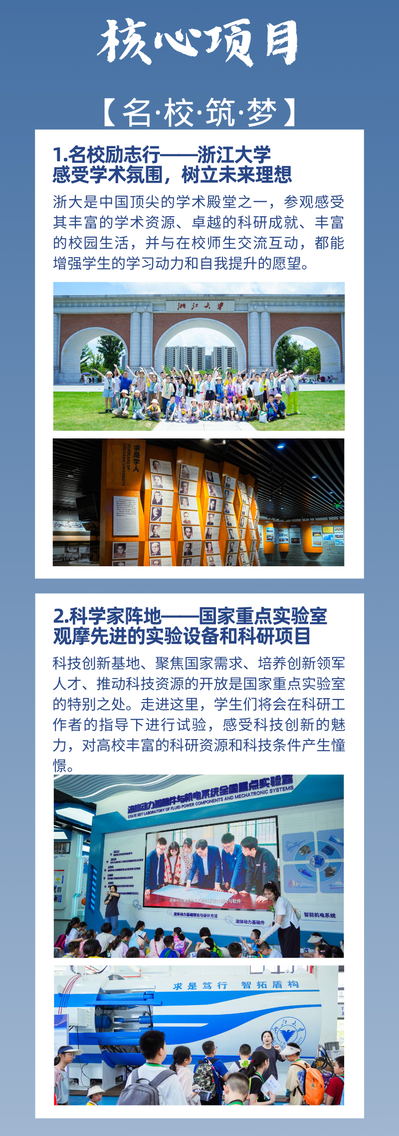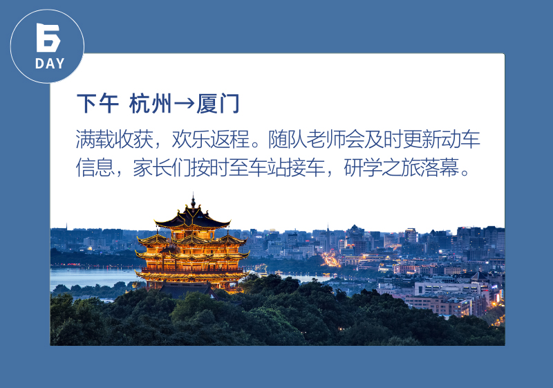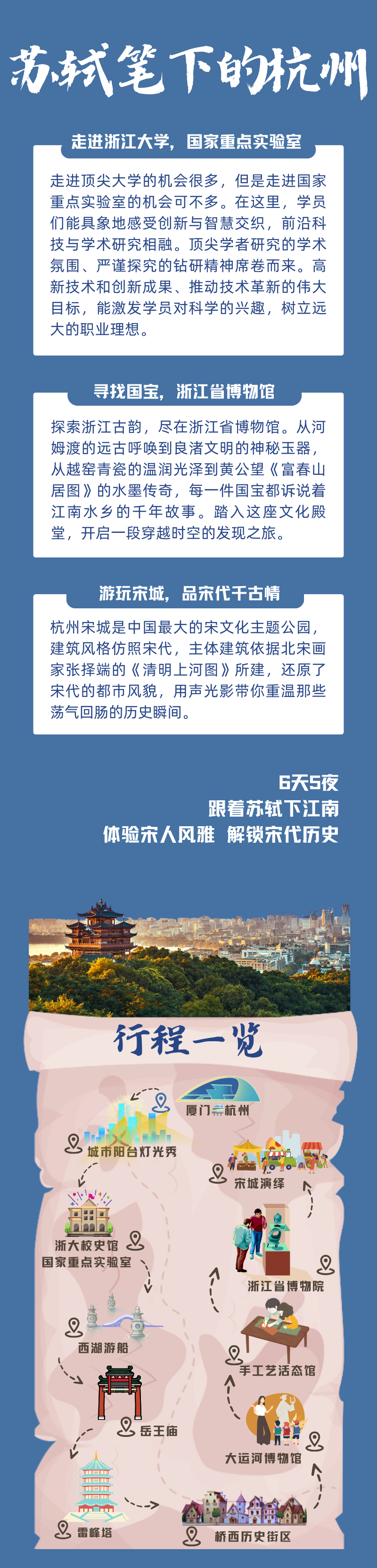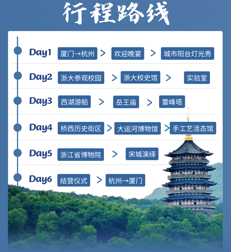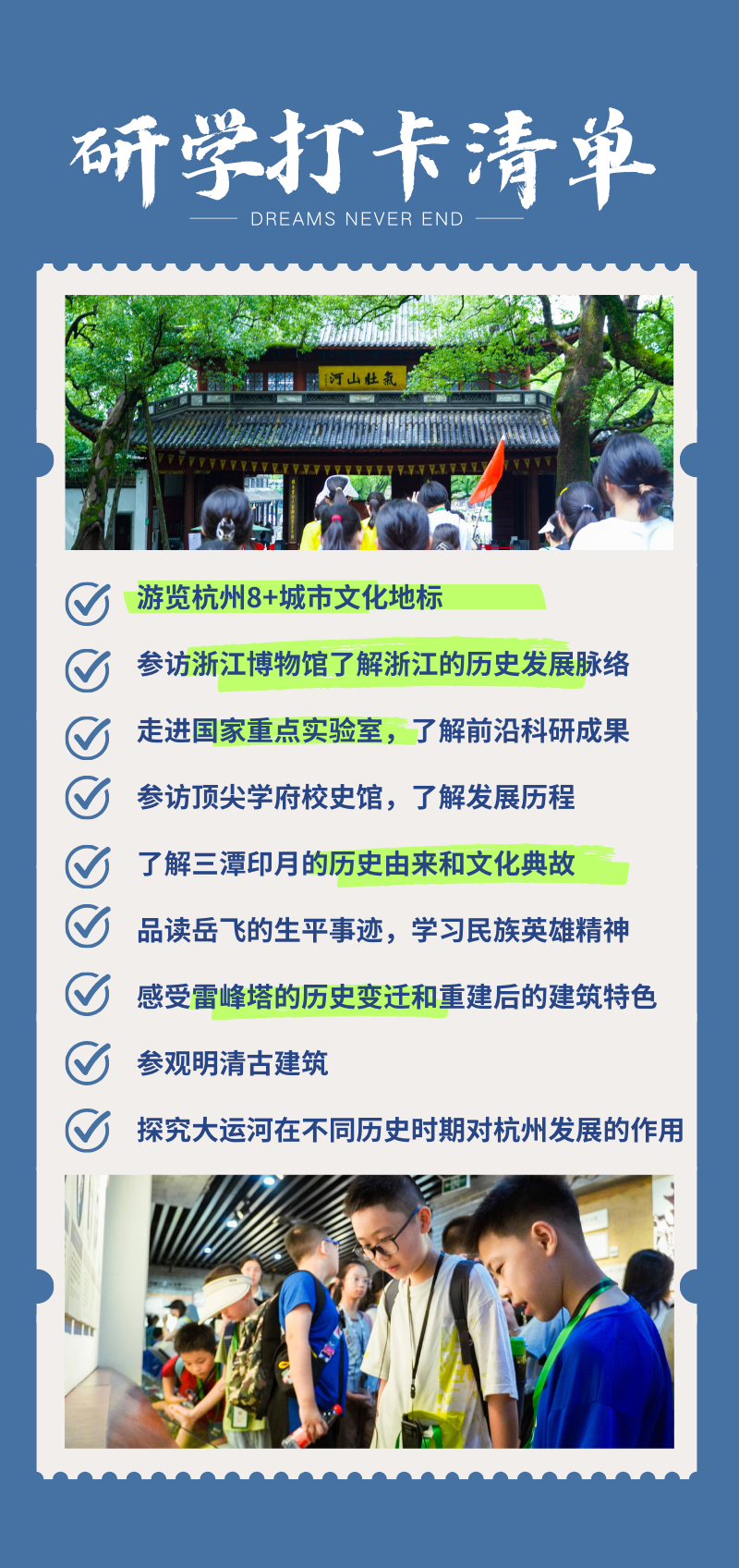 餐饮:开营日晚餐,结营日早餐,及其他研学行程中的三餐,穿插安排杭州等当地特色美食。