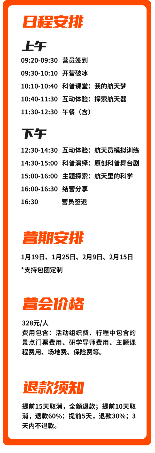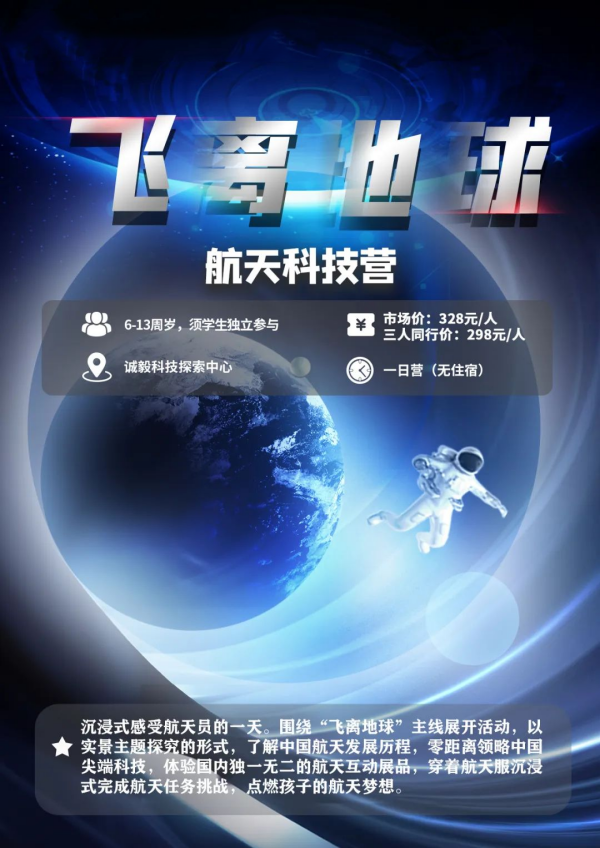 不仅如此,此次营会还能体验到限时的全新特展《失重运动会》!想要飞离地球、探索太空,必须具备卓越的身体条件和心理素质。走进全新“太空训练营”,限时体验太空主题运动特展,接受体力智力脑力的三重考验,从零开始了解并体验“航天员炼成记”。那么,下一个航天员会是你吗?