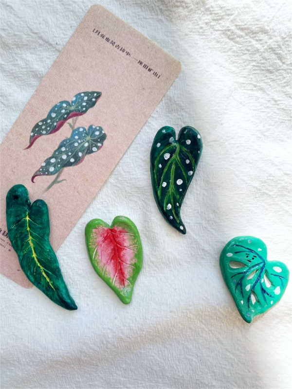 用陶泥印刻春天的形状 ,用画笔绘制春天的颜色,制作独一无二的春日冰箱贴。
